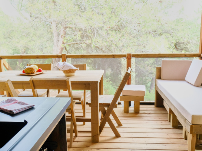 Treten Sie ein in ein stilvolles Refugium, das mit allen modernen Annehmlichkeiten ausgestattet ist, die Sie brauchen, um sich sofort wie zu Hause zu fühlen. Ob Sie auf Ihrer privaten Terrasse entspannen oder sich im großzügigen Innenraum zurücklehnen—die Premium Lodge bietet die ultimative, stressfreie Auszeit für alle, die in puncto Qualität keine Kompromisse eingehen möchten.