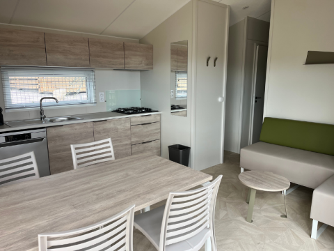 Die Tribu stacaravans bestehen aus zwei verbundenen Mobilheimen und bieten viel Platz. Die Gesamtfläche beträgt 60 m². Die große, halb überdachte Terrasse von 48 m² verbindet beide Mobilheime. Rauchen ist nicht erlaubt. Haustiere sind auf Anfrage unter bestimmten Bedingungen gestattet.