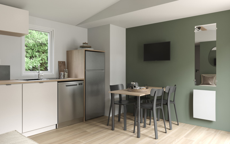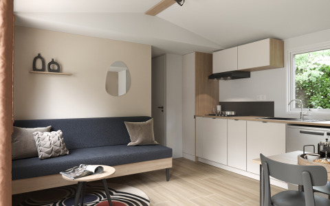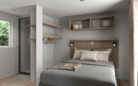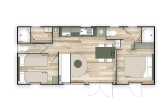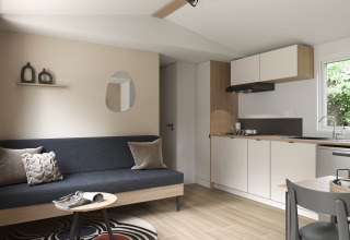 Entspannen Sie sich in einem geräumigen und modernen Premium-Ferienhaus von 35 m², das für Komfort und Ruhe konzipiert ist. Genießen Sie zwei Schlafzimmer, zwei Badezimmer und eine umkehrbare Klimaanlage – ideal für jede Jahreszeit. Erleben Sie das Leben im Freien auf einer großen, teilweise überdachten XL-Terrasse, die sich wie ein zusätzlicher Wohnraum anfühlt. Kommen Sie zur Ruhe im hellen Wohnzimmer mit Fernseher und Heizung, und kochen Sie mühelos in der komplett ausgestatteten Küche mit Geschirrspüler, Kühlschrank mit Gefrierfach, Mikrowelle, Kaffeemaschine, Wasserkocher und Toaster. Schlafen Sie bequem in einem Doppelbett (160 cm) oder zwei Einzelbetten (80 cm), von denen eines auch als Kinderbett geeignet ist. Zwei moderne Badezimmer mit Handtuchheizung, Föhn und einer separaten Toilette runden das Ganze ab. Haustiere sind nicht erlaubt.