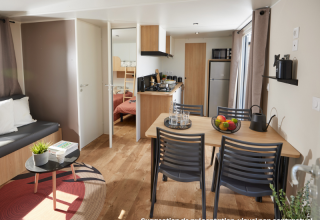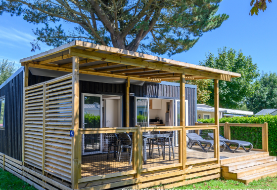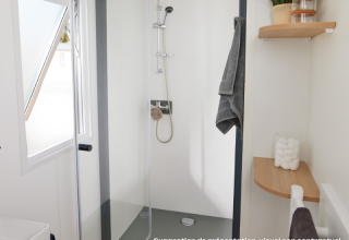 Das Homeflower Premium ist ein modernes und komfortables Chalet von 35 m², das perfekt für einen Urlaub mit bis zu 6 Personen geeignet ist. Im Inneren findest du drei Schlafzimmer: eines mit einem Doppelbett und zwei Zimmer mit jeweils zwei Einzelbetten. Genügend Platz für eine große Familie.