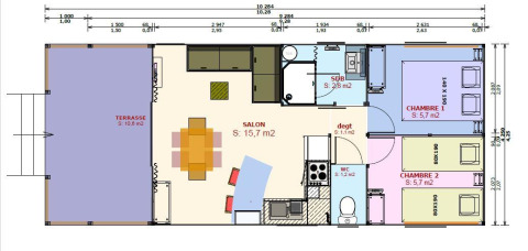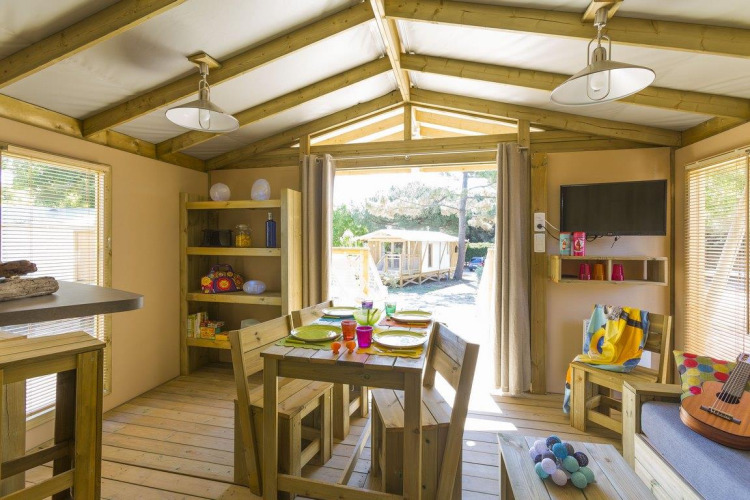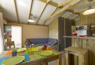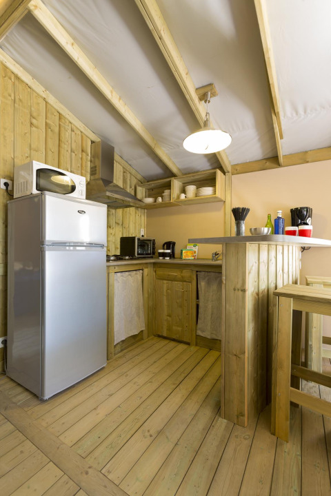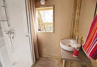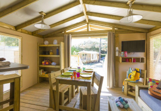 Auf der Suche nach einem Urlaub, der Natur und erstklassigen Komfort vereint? Entdecken Sie diese geräumige Sweet Flower von 43 m², ideal für 4 Personen. Die Sweet Flower steht auf Stelzen und verfügt über ein großes Wohnzimmer von 20 m² mit Fernseher, einer Bar und einem Mini-Ofen – ideal zur Unterhaltung.