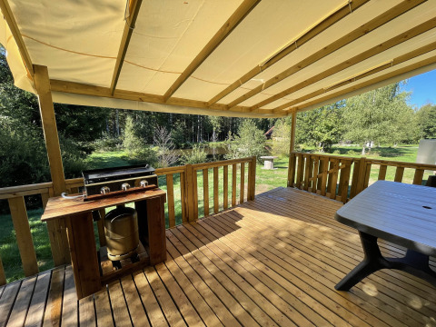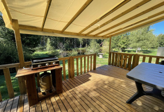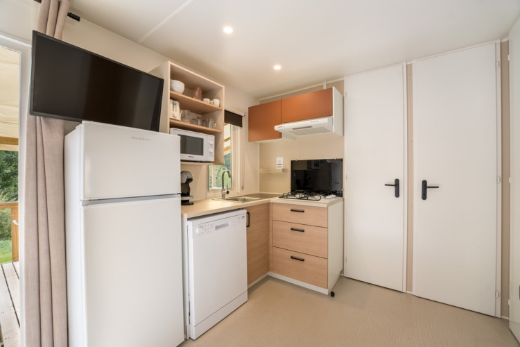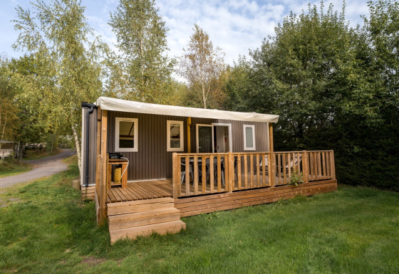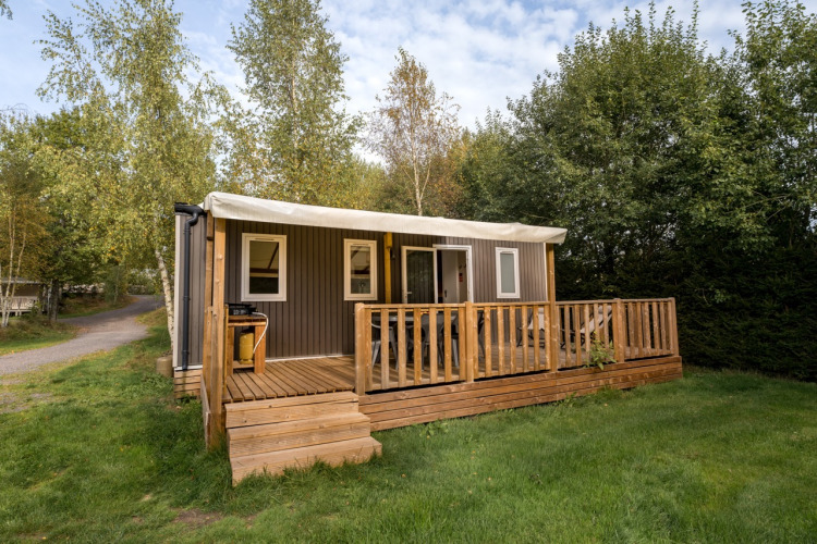 29 m² Premium Exception Mobilheim mit 23 m² halbüberdachter Terrasse, ausgestattet mit:
