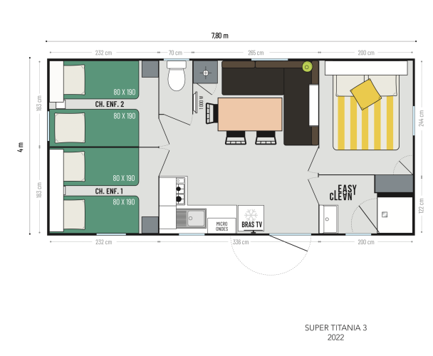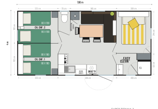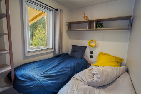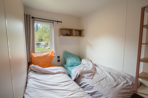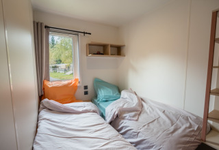 - einem separaten Schlafzimmer mit zwei Einzelbetten (80x190 cm) und Stauraum