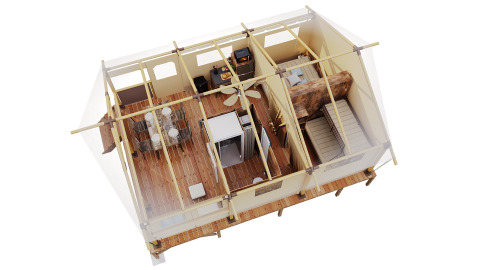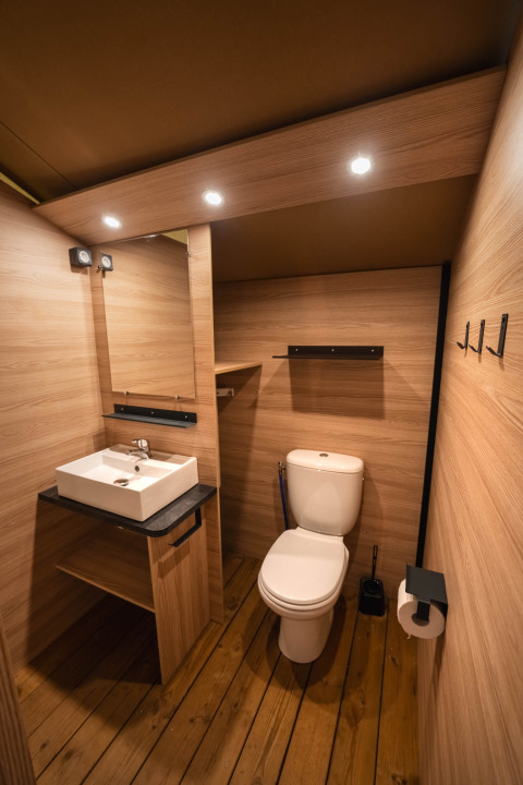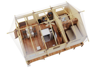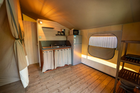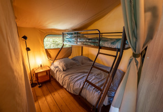 Mit ihren 34,5 m², davon 11,5 m² Terrasse, vereint die Kenya Tent den authentischen Charme eines Zelts mit dem Komfort einer vollständig ausgestatteten Unterkunft. Ideal für Familien, mit ausreichend Privatsphäre und Gemütlichkeit.