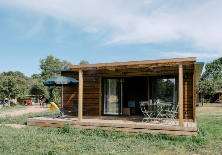 Das Chalet verfügt über eine große, schattige Terrasse von 17 m², auf der Sie die frische Luft und die ruhige Umgebung genießen können. Es ist der perfekte Ort, um zu frühstücken, zu Mittag zu essen oder einfach mit einem guten Buch zu entspannen.