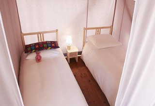 Die Cabane Lodge op palen ist eine komfortable und stimmungsvolle Unterkunft von 34 m², perfekt für einen entspannten Aufenthalt mit vier Personen. Diese Holz-Lodge verfügt über zwei Schlafzimmer: Eines mit einem Doppelbett und eines mit zwei Einzelbetten. Im Inneren findest du ein gemütliches Wohnzimmer mit Fernseher und Klimaanlage, die sowohl heizen als auch kühlen kann, sodass du in jeder Jahreszeit komfortabel wohnst.
