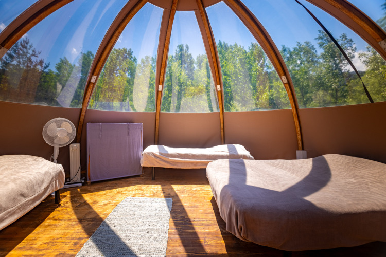 Im Wigwam von Bulle zu schlafen ist ein unvergessliches Erlebnis! Dank der transparenten Kuppel im ersten Stock schläfst du buchstäblich unter dem Sternenhimmel Südfrankreichs. Der geräumige Wigwam bietet Platz für bis zu sechs Personen und verfügt über eine Kochgelegenheit. Lass dich von der Milchstraße mitreißen und wache mit einem atemberaubenden Blick auf die Natur um dich herum auf.