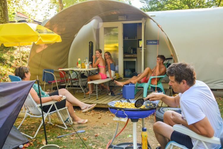 Dieses Glamping in Okzitanien umfasst mehrere Lodges, Zelte, Chalets und Mobilheime im Ferienpark.
