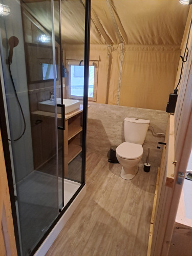 Höhepunkte von Glamping Zelt + Sanitäranlagen