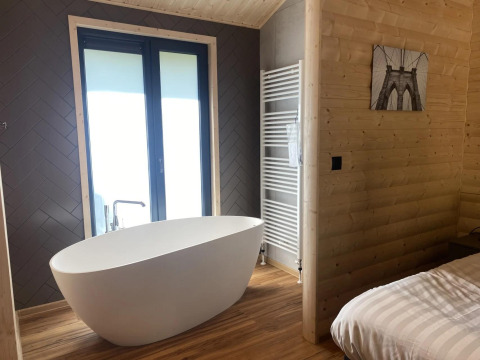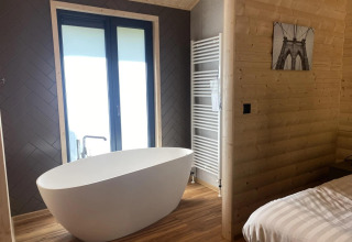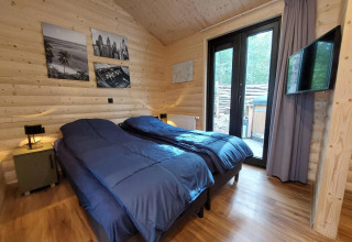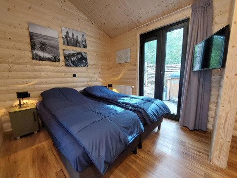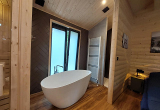 Wellness Lodge Wood XL 2 ist ein gemütliches Chalet mit vielen Holzelementen und ist für 2 Personen geeignet. Das Chalet befindet sich im Erdgeschoss. Beim Betreten kommt man zuerst an der modernen Küche vorbei mit unter anderem Geschirrspüler, Mikrowelle, Wasserkocher, Filterkaffeemaschine und Kühlschrank mit Gefrierfach. Das Wohnzimmer hat einen Essbereich und eine gemütliche Sitzecke mit Fernseher. Durch die Schiebetür gelangt man direkt in den Garten mit Terrasse, wo sich auch der Hot Tub befindet. Das Chalet hat 1 Schlafzimmer mit Einzel-Boxspringbetten, die zusammengeschoben sind. Du genießt luxuriöse Wellness-Einrichtungen im eigenen Bad, mit begehbarer Dusche mit Sunshower, Badewanne und Sauna. Es gibt auch einen Fernseher im Schlafzimmer. Es gibt eine separate Toilette. Du kannst dein Auto beim Chalet parken und WLAN nutzen.