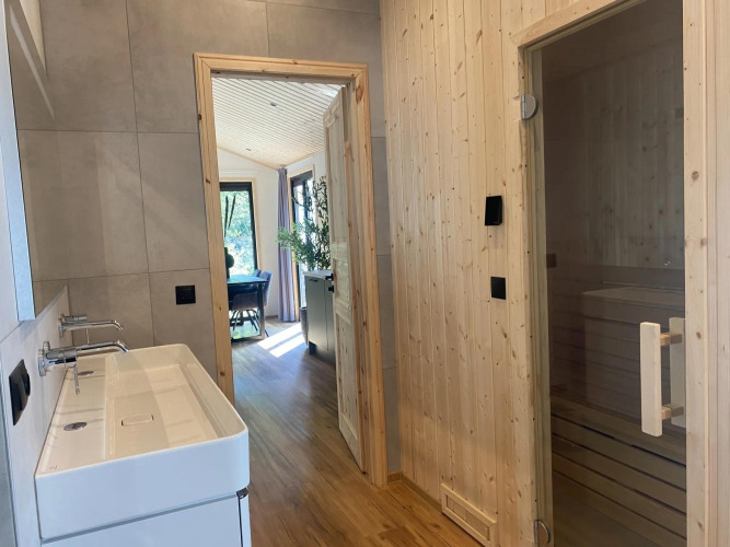 Super mooi gelegen. Mooie rustige omgeving.Heerlijke hottub. Grote badkamer met nog eens een bubbelbad en infrarood sauna. Super genoten.