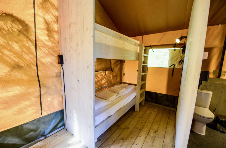 Eine Abenteuerhütte mit allen Vorteilen. Luxus in seiner ganzen Einfachheit findet man in diesem Zelt mit eigenem Sanitärbereich. Mit einer Innenfläche von 25 m2 bietet es Platz für Abgeschiedenheit und Zweisamkeit für einen Club von vier Personen.