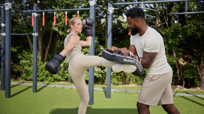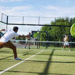 Es gibt einen Yogagarten, in dem Sie allein Ihrem Flow folgen oder an einem der Gruppenkurse teilnehmen können. Für ein etwas aktiveres Workout können Sie die Bootcamp-Einrichtungen oder einen der Sportplätze nutzen. Es gibt auch einen richtigen Padelplatz, und im Clubhaus können Sie kostenlos Ausrüstung ausleihen. Für Kinder gibt es einen Spielplatz und wenn Sie die Gegend mit dem Fahrrad erkunden möchten, können Sie ein (Elektro-)Fahrrad mieten.
