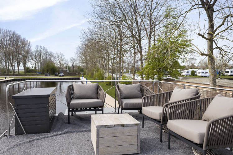 Das Hausboot hat einen großen Garten (ca. 100 m2), in dem die Kinder auf der großen Wiese spielen können oder wo Sie sitzen und grillen können; ein mobiler Grill ist vorhanden. Vom Garten aus blicken Sie auf das Sneekermeer, wo Sie morgens den wunderschönen Sonnenaufgang genießen können. Angrenzend an den Garten befindet sich eine Terrasse (9 m2) mit Sitzgelegenheiten für 4 Personen. An der Rückseite des Hausbootes befindet sich eine kleine Terrasse (4 m2), die auch über eine Badeleiter verfügt, so dass Sie ein erfrischendes Bad im Hafen nehmen oder einfach auf das Surfbrett steigen können. Denn lieben Sie Suppen oder wollten Sie das schon immer mal tun? Dann ist dieses Ferienhaus genau das Richtige für Sie, mit 2 SUPs als Standard! Über die Treppe auf der hinteren Terrasse gelangen Sie auf die sonnige Dachterrasse (25 m2), die mit einer schönen Sitzgarnitur ausgestattet ist. Hier können Sie den Panoramablick über einen der schönsten Yachthäfen Frieslands genießen: Waterrijck Sneekermeer.