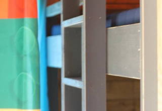 - Ein Kinderreisebett passt neben das Doppelbett und das Etagenbett.