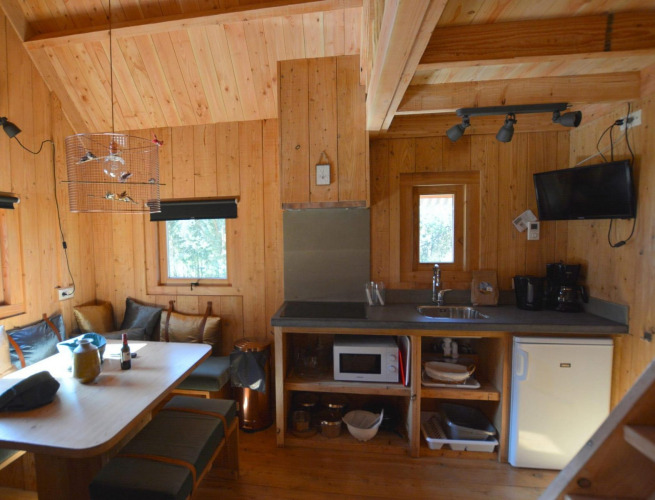 Das Zwerfhut op Hoogte 5 ist ein gemütliches Ferienhaus auf Stelzen. Zum Eingang des Holzhauses führt eine Treppe. Im Wohnbereich gibt es eine gemütliche Sitzecke mit Fernseher. Die offene Küche ist mit einem Induktionskochfeld, einem Kühlschrank, einer Mikrowelle und einer Filterkaffeemaschine und Senseo-Maschine. Es gibt 2 Schlafzimmer: Im Erdgeschoss befindet sich ein Doppelbett. Der Schlafboden mit einem weiteren Doppelbett und einem Einzelbett kann über eine weitere Treppe erreicht werden. Das Zwerfhut op Hoogte 5 hat einen Balkon und einen Garten mit einem Picknicktisch und einer Schaukel. Haustiere sind in dieser Unterkunft nicht erlaubt. Zusätzlich verfügt das Haus über einen eigenen Parkplatz und kostenfreies WLAN.
