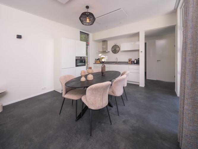 Entfliehen Sie in die Bosvilla, wo modernes Design und natürliche Ruhe aufeinandertreffen. Dieses großzügige Haus bietet Platz für sechs Personen und verfügt über drei stilvoll eingerichtete Schlafzimmer. Das helle Wohnzimmer strahlt Wärme aus und lädt zu langen, gemütlichen Abenden ein. In der offenen Küche mit Geschirrspüler und Kombi-Mikrowelle wird das Kochen zum Vergnügen – egal ob für ein schnelles Mittagessen oder ein ausgiebiges Abendessen. Draußen erwartet Sie eine großzügige Terrasse mit elegantem Gartenmobiliar, perfekt für ein Frühstück in der Morgensonne oder ein Abendessen bei Sonnenuntergang. Dank der Klimaanlage bleibt es drinnen immer angenehm – unabhängig von der Jahreszeit. Mit Blick auf den Wald und viel Raum zur Erholung verspricht die Bosvilla einen Aufenthalt voller Komfort, Stil und Ruhe.