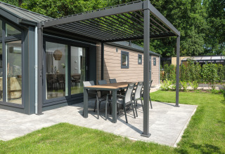 Entfliehen Sie in die Veluwe und genießen Sie einen komfortablen Aufenthalt in der Doornenburg Lodge. Diese stilvolle Lodge bietet Platz für sechs Personen und verfügt über drei Schlafzimmer, ein modernes Badezimmer und eine komplett ausgestattete Küche. Das helle Wohnzimmer lädt zu entspannten Momenten nach einem Tag in der Natur ein. Draußen wartet eine private Terrasse mit luxuriöser Pergola – perfekt für lange Sommerabende oder eine Tasse Kaffee in der Morgensonne. Dank der Klimaanlage ist es drinnen immer angenehm, egal zu welcher Jahreszeit.