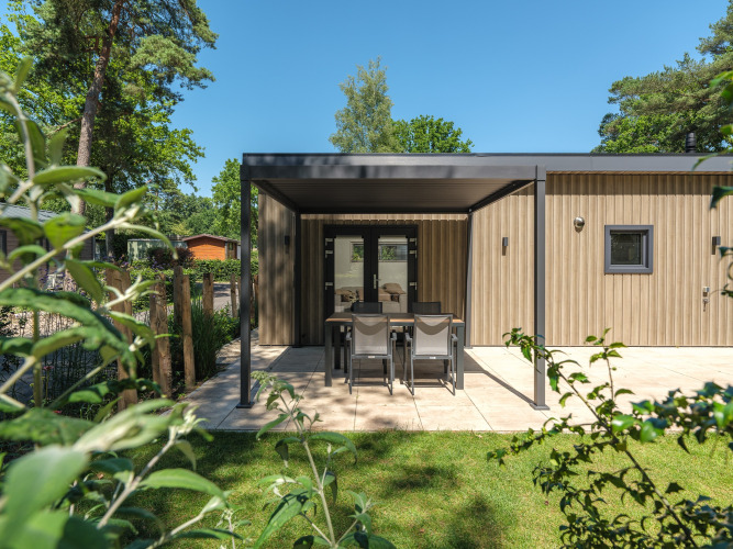 Draußen erwartet Sie eine private Terrasse, auf der Sie die frische Luft und die ruhige Umgebung genießen können. Unter der luxuriösen Pergola sitzen Sie auch an warmen Tagen oder bei leichtem Regen komfortabel im Freien. Einige Lodges dieses Typs verfügen über zusätzliche Ausstattungen für noch mehr Komfort; diese können Sie während des Buchungsprozesses auswählen. Die Loevestein Comfort ist somit ein wunderbarer Ort für einen entspannten Aufenthalt zu zweit.
