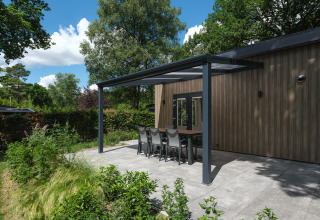 Neben der stilvollen Einrichtung bietet die Lodge auch zusätzlichen Komfort mit einer Klimaanlage, die sowohl heizen als auch kühlen kann und so zu jeder Jahreszeit für ein optimales Raumklima sorgt. Genießen Sie draußen die luxuriöse Pergola, damit Sie auch an heißen Tagen oder bei leichtem Regen draußen sitzen können.