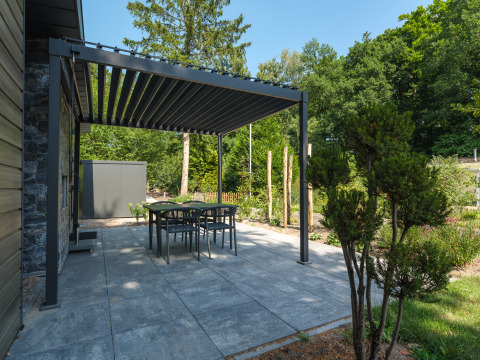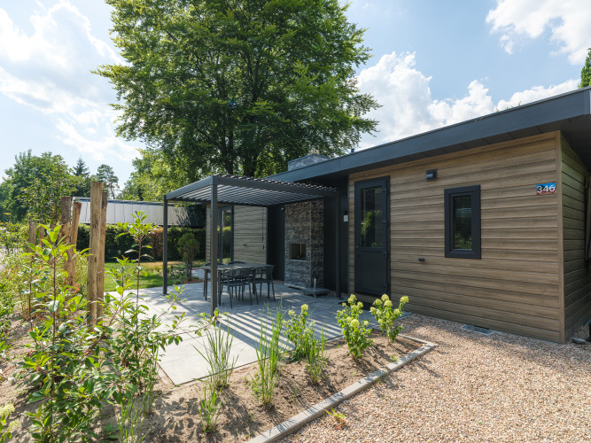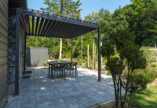Wohnen im Freien mit extra viel Luxus Auf der Terrasse erwartet dich eine stilvolle Pergola mit einem stimmungsvollen elektrischen Außenkamin. Ob du dich an einem lauen Sommerabend entspannst oder einen knackigen Herbstmorgen genießt, hier kannst du das ganze Jahr über gemütlich draußen sitzen. Der perfekte Ort für einen Urlaub in der Veluwe!