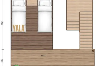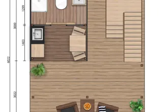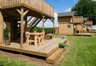 Draußen genießt du eine geräumige Terrasse mit Markise und Sitzmöbeln – ideal, um in Ruhe zu frühstücken oder gemeinsam zu entspannen. Darüber hinaus verfügt das Zelt über eine einzigartige Dachterrasse mit Blick auf die Limburger Landschaft, ein besonderer Ort, um die Umgebung zu genießen.