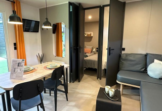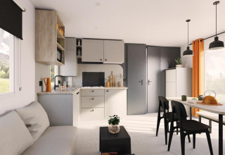 Die geräumigen Lodges sind mit allem Komfort ausgestattet: eine komplett eingerichtete Küche, bequeme Betten und eine große Veranda, auf der du mit einer Tasse Kaffee oder einem guten Glas Wein entspannen kannst. Während du die Aussicht genießt oder ein Buch liest, wird deinen Kindern garantiert nicht langweilig. Sie können direkt von der Lodge zum Spielplatz oder einem der Sportfelder gehen.
