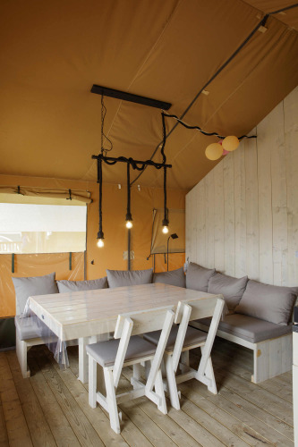 Glamping, mögen Sie Luxus-Camping mit viel Platz und allen Annehmlichkeiten? Dann schauen Sie sich diese geräumigen Safarizelte an: das große Zelt ist 5x7 Meter groß und hat eine große Außenterrasse von 5x3 Metern.