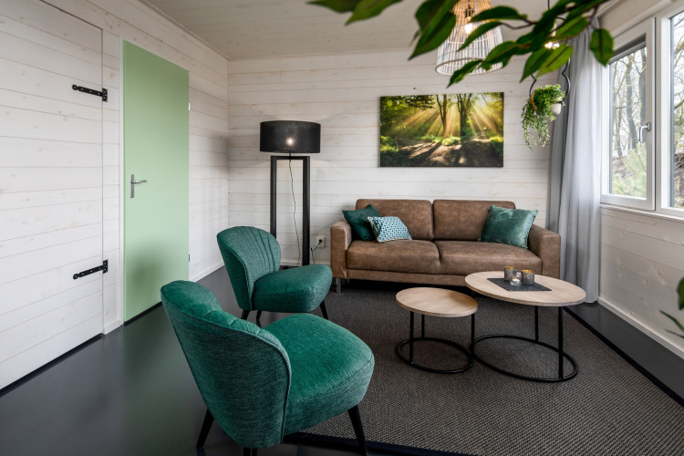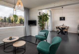 Versteckt im ruhigen Vakantiepark Schaijk bietet diese moderne eingeschossige Water Lodge die perfekte Umgebung für entspannte Morgen und gemütliche Abende am Wasser. Von Ihrer möblierten Terrasse blicken Sie direkt auf das glitzernde Wasser – der ideale Platz für den ersten Kaffee des Tages oder einen Drink zum Sonnenuntergang.