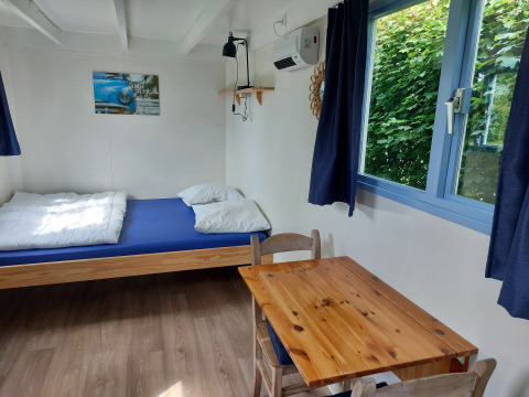 Im hinteren Teil des Wohnzimmers befindet sich ein Doppelbett mit den Maßen 1,40 x 2,00 m.
