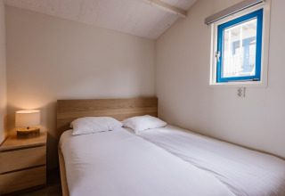 Es gibt ein separates Schlafzimmer mit einem komfortablen Doppelbett – ideal für eine erholsame Nacht nach einem erfrischenden Strandspaziergang. Das Badezimmer ist mit einer Dusche und Toilette ausgestattet, sodass Sie alles, was Sie brauchen, in Ihrem kompakten Stranddomizil zur Hand haben.