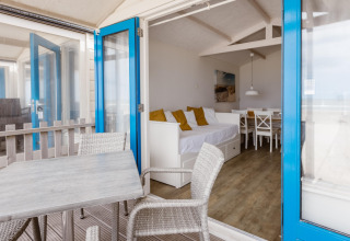 Draußen findet die Magie wirklich statt. Ihre überdachte Terrasse mit Gartenmöbeln ist der perfekte Ort, um den Tag mit einem Kaffee zu beginnen oder ihn bei einem Drink und dem Blick auf den Sonnenuntergang über dem Meer ausklingen zu lassen. Von hier genießen Sie einen ungestörten Blick über den Strand und die Nordsee – Sie sind buchstäblich nur ein paar Schritte oberhalb des Sands. Bitte beachten Sie: Ihr Strandhaus erreichen Sie über eine kurze Treppe vom Strand aus, ohne Tor.