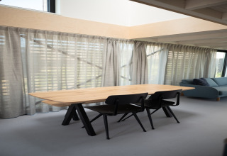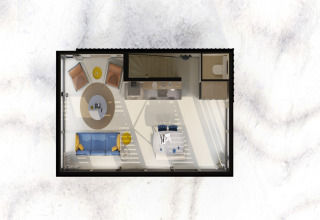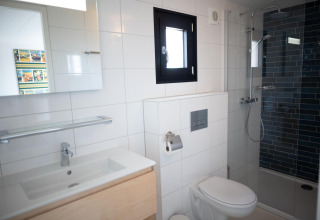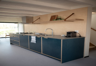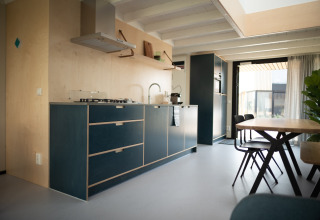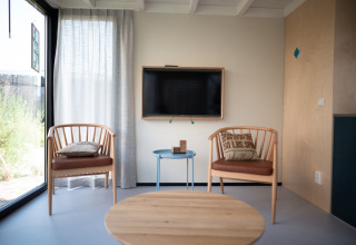 Ihre Lodge ist hell, stilvoll und komplett ebenerdig – ideal, wenn Sie mit Kindern reisen oder einfach Wert auf Komfort und Bequemlichkeit legen. Im Wohnzimmer finden Sie eine gemütliche Sitzecke und einen Smart-TV für entspannte Abende nach einem Tag am Strand. Die offene Küche ist voll ausgestattet mit allem, was Sie brauchen: Geschirrspüler, Mikrowelle, Nespresso-Kaffeemaschine und ein Quooker-Wasserhahn für kochend heißes Wasser auf Knopfdruck – perfekt für einen schnellen Tee oder Kaffee, bevor Sie losziehen.