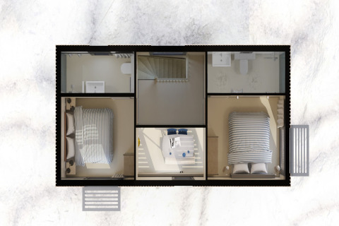Es gibt zwei Schlafzimmer, jedes mit einzelnen Boxspringbetten, die als Doppelbetten zusammengestellt sind, sodass jeder viel Platz zum Schlafen hat. Beide Schlafzimmer verfügen über ein eigenes Bad mit Dusche und WC, was diese Lodge sehr praktisch für Familien, gemeinsam reisende Paare oder Freunde macht, die ein wenig Privatsphäre schätzen.
