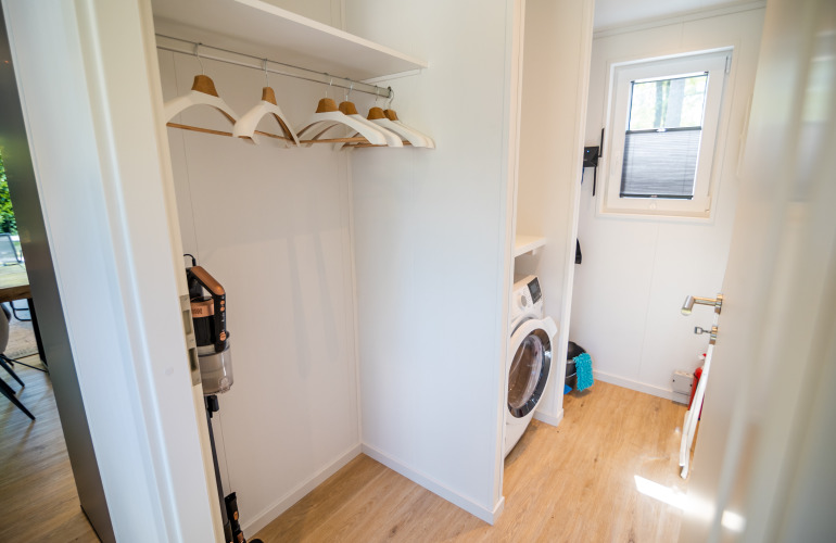 Mooi compleet huisje. Rustig park, muv natuurgeluiden....eikels en dennenappels op t dak. Schoonmaak ok.
