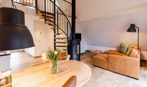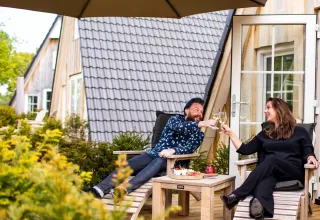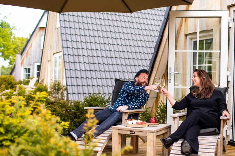 Die Wellness Lodge ist ideal für ein Paar, das ein ruhiges Wochenende oder einen gemeinsamen Urlaub auf dem Land verbringen möchte. Die Lodge verfügt über ein Loft mit einem Top-Komfort-Doppelbett und ein Erdgeschoss mit allen notwendigen Annehmlichkeiten. Dazu gehört ein Wohnzimmer mit einem Flachbildfernseher, einem Gaskamin und einer Fußbodenheizung. Die Flügeltüren führen auf die Terrasse mit einer schönen Gartengarnitur aus Teakholz. Die luxuriöse, offene Küche ist mit allen erdenklichen Geräten ausgestattet, darunter ein Geschirrspüler, eine Illy-Espressomaschine und ein Kombi-Mikrowellenherd. Im Wellness-Bad finden Sie eine Regendusche mit Sunshower, einen Whirlpool, eine Sauna und ein Waschbecken.