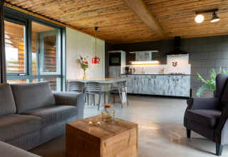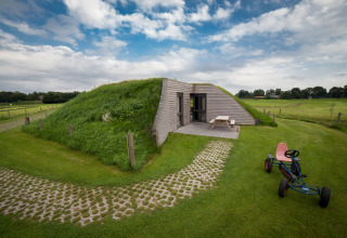 Suchen Sie nach einem Glamping-Erlebnis, das ein wenig anders ist? Koe in de Kost 2 ist ein einzigartiges Ferienhaus, das cleveres Design, warme Naturmaterialien und eine beeindruckende Lage auf dem Bauernhof vereint. Unter einem grasbewachsenen, überwucherten Dach versteckt und mit viel Holz gebaut – einschließlich einer auffälligen Decke aus Baumstämmen – fühlt sich dieser Ort gemütlich und naturnah an, ist dabei jedoch vollkommen modern und komfortabel.
