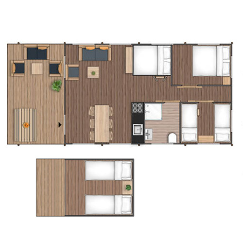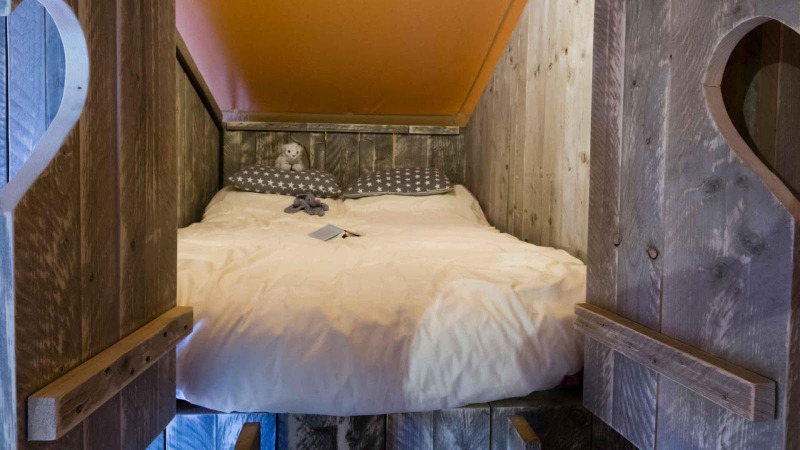 Das Zelt hat 3 Schlafzimmer, 1 mit einem Doppelbett, 1 mit einem Etagenbett und einem Einzelbett und ein Zimmer mit einem gemütlichen Kastenbett für 2 Personen. Unter dem Kastenbett befindet sich ein weiterer lustiger Spielbereich für die Kinder. Für die Mathezauberer fehlt uns tatsächlich noch ein Zimmer... und das ist ein ganz besonderes Zimmer! Neben dem großen Safarizelt Premium gibt es noch ein Mini-Safarizelt mit 2 Einzelbetten. Dieses Mini-Safarizelt ist speziell für Kinder konzipiert, damit auch sie ein besonderes Erlebnis während des Urlaubs haben.