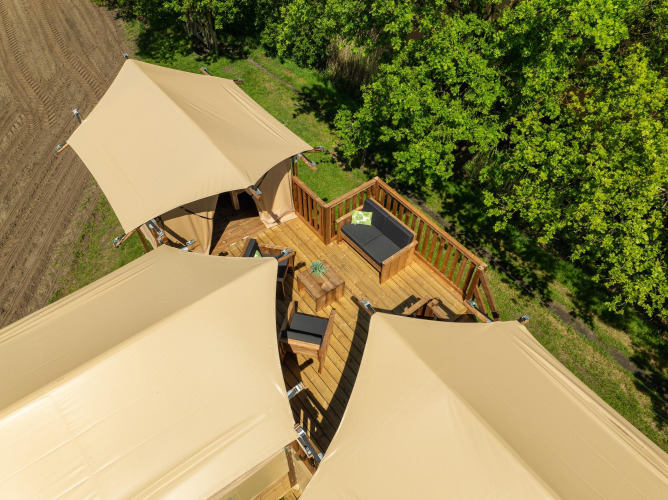 Glamping ist schon cool, aber dieses Zelt macht es noch spezieller. Ein Baumhauszelt an einem der schönsten Plätze in Twente, mit einem Blick in luftiger Höhe über den Fluss Regge und die Landschaft von Twente. Sie schauen Hunderte von Metern (und manchmal Kilometer) weit weg. Sie schlafen mitten in der Natur von Twente. Und das alles mit dem Luxus des Baumhauszeltes und des 5-Sterne-Ferienparks ANWB in unmittelbarer Nähe. Das Zelt ist so eingerichtet, dass Sie im Erdgeschoss wohnen und im Obergeschoss schlafen. Unten haben Sie eine voll ausgestattete Küche und ein Wohnzimmer. Im Obergeschoss befinden sich 3 Schlafzimmer. Einmal ein Doppelzimmer und zweimal ein Zimmer mit 2 Einzelbetten. Damit ist dieses Zelt für 6 Personen geeignet. Wegen des Zeltes und der Aussicht möchte man dieses Zelt eigentlich gar nicht verlassen, aber wenn man es doch tut, macht man es sich mit allen Einrichtungen des Ferienparks besonders bequem. Sie können selbst kochen, aber auch im kinderfreundlichen Restaurant leckere lokale Gerichte genießen.