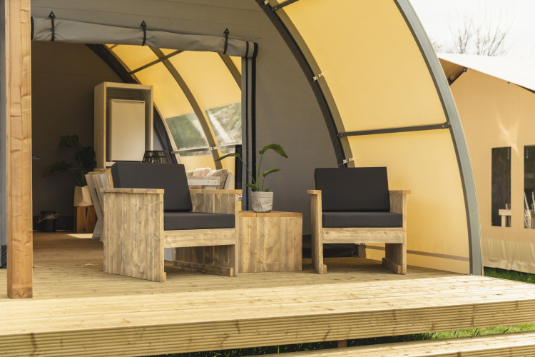 Schlafen in der Panorama Lodge ist ein echtes Festival-Erlebnis! Die Lodge verfügt über gemütliche, überdachte Schlafkabinen, während der überdachte Wohnbereich Sie in das Twenter Outdoor-Leben in einem Park mit Festivalatmosphäre eintauchen lässt. Bequeme Betten, check! Eine gemütliche Sitzecke, check! Private Sanitäranlagen, natürlich! Die Lodge hat auch eine eigene Terrasse und eine Küchenzeile mit Kühlschrank. Die Schlafkabinen und das Bad sind abgeschlossen, so dass Sie viel Privatsphäre haben. Der Wohnbereich ist überdacht, aber ansonsten weitgehend offen. So können Sie beim Abendessen die Vögel singen hören. Das Lodgezelt besteht aus 2 Schlafzimmern. 1 Schlafzimmer mit einem Doppelbett und 1 Schlafzimmer mit einem Einzelbett und einem Etagenbett. Das Etagenbett ist für Kinder bis zu 12 Jahren geeignet. Es gibt auch Platz für ein Kinderbett für die Kleinsten. Im Park, in der Nähe der Panorama Lodge, gibt es verschiedene Spielmöglichkeiten für Kinder. Sie werden also die Zeit Ihres Lebens haben, mit der ganzen Familie!