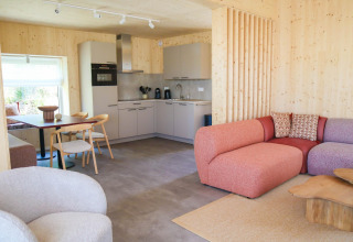 Innen findest du drei kuschelige Schlafzimmer, jedes mit einem bequemen Doppel-Boxbett. Kein Streit um das "beste Zimmer" – jeder bekommt ein schönes. Die Einrichtung ist modern mit einem Hauch von rustikalem Charme und schafft vom ersten Moment an eine warme und einladende Atmosphäre. Der offene Wohn- und Essbereich ist das Herz des Hauses: Zusammen kochen, lange Abendessen genießen, Spiele spielen oder den Tag entspannt mit Kaffee und Sonnenschein beginnen.