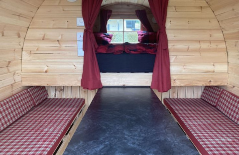 Die gemütlichen Finkota-Fässer aus naturbelassenem Fichtenholz stehen auf der Familienwiese mit direktem Blick auf den See oder im Birkenwäldchen direkt am Waldrand. Die Fässer bieten Platz für bis zu 2 Erwachsene und 2 Kinder (bis ca. 12 Jahre alt) und sind die perfekte Unterkunft für ein Wanderwochenende oder einen Kurzurlaub in der Natur. Jedes Fass verfügt über ein Doppelbett (2x2 Meter) und zwei Sofas, die jeweils in kleine Betten von 80 cm Breite umgewandelt werden können. Vor jedem Fass befindet sich eine kleine Terrasse mit einem Tisch, 4 Stühlen und einem Sonnenschirm. Als Gast in einem Schlaffass können Sie die gemeinsamen sanitären Einrichtungen nutzen. Ein Spannbettlaken für das "große" Bett ist vorhanden.