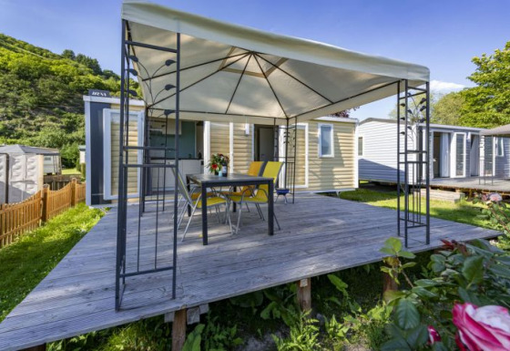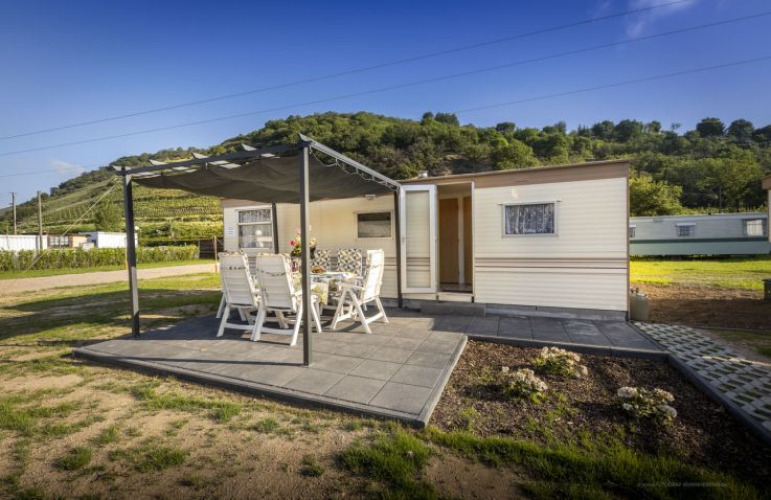Das Mobilheim "Super Mercure Riviera" liegt auf einem nach Süden ausgerichteten Hochplateau mit schönem Rheinpanorama und ist komplett ausgestattet: ein Schlafzimmer mit Doppelbett, ein Zimmer mit zwei Einzelbetten und einem ausklappbaren Zusatzbett, ein Badezimmer mit Dusche, separates WC und eine voll ausgestattete Küche mit Geschirrspüler, Cerankochfeld, Mikrowelle und Kaffeemaschine. Im Wohnzimmer gibt es Satellitenfernsehen und draußen laden Gartenmöbel und ein Grill zum Entspannen ein.