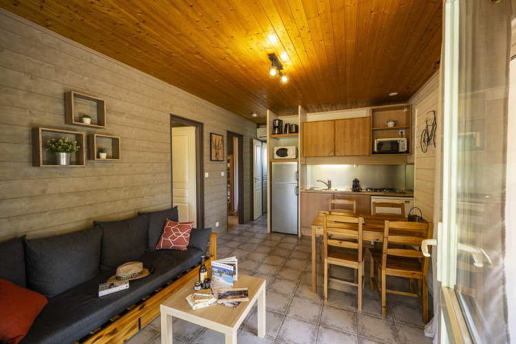 Dieses schöne Chalet in Frankreich ist für 6 Personen geeignet. Es gibt ein Schlafzimmer mit 1 Doppelbett und ein Schlafzimmer mit 4 Betten, darunter ein Etagenbett. Die Küche ist komplett eingerichtet und mit allem ausgestattet, was Sie zum Kochen benötigen. Im Chalet finden Sie ein Badezimmer und eine separate Toilette. Beginnen Sie den Tag auf der überdachten Terrasse oder im Wohnzimmer mit Sofa, Tisch und Stühlen. Auch hier können „Premium“-Optionen gebucht werden. Dann sind zum Beispiel Handtücher und Bettwäsche im Chalet vorhanden, ein Grill steht bereit und die Endreinigung wird übernommen.