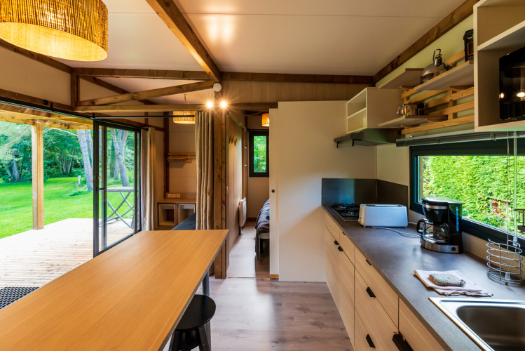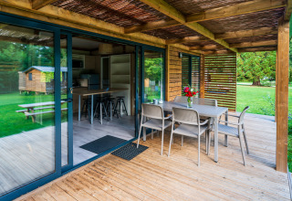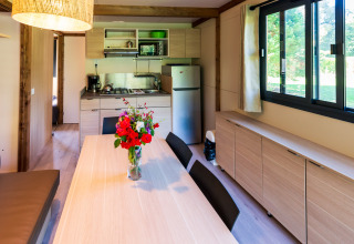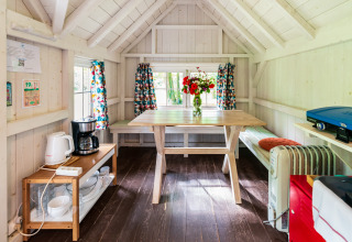 Entdecken Sie einen charmanten Glampingplatz mit zwei separaten Schlafzimmern, ideal für einen entspannten Aufenthalt. Bereiten Sie Ihre Mahlzeiten in der voll ausgestatteten Küche zu und genießen Sie die modernen sanitären Einrichtungen. Entspannen Sie sich auf der Terrasse mit bequemen Liegestühlen und einem Gartenset, perfekt für einen sonnigen Nachmittag oder einen Grillabend. Das Innere bietet einen gemütlichen Wohnbereich mit effizienter Heizung und moderner Multimedia-Ausstattung. Haustiere sind nicht erlaubt, was für Ruhe und Frieden sorgt. Ideal für diejenigen, die Privatsphäre, Komfort und das Leben im Freien mit einer praktischen Aufteilung und allen wichtigen Einrichtungen in Reichweite kombinieren möchten. Eine perfekte Mischung aus Komfort und Natur, bereit für einen sorglosen Aufenthalt.