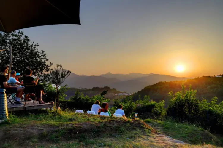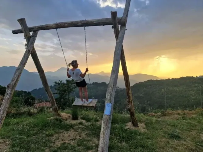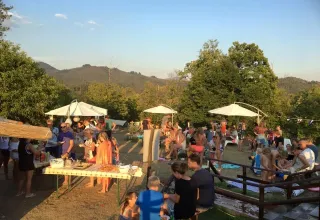 Erlebe rustikales Camping auf Pian d’Amora, einem kleinen terrassenförmigen Campingplatz auf 600 Metern Höhe in Nordtoskana. Auf diesem Campingplatz genießt du Natur, Ruhe und Weite zwischen Hügeln und Bergen. Der Campingplatz ist auf mehrere Terrassen verteilt, was für Höhenunterschiede und wunderschöne Aussichten sorgt. Oben findest du die Rezeption, die Poolbar und das Schwimmbad mit Blick auf die Berge und die großartigen Sonnenuntergänge. Entspanne dich und komm zur Ruhe auf diesem stimmungsvollen Campingplatz.