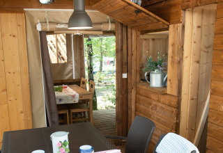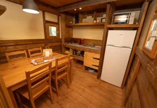 Im Erdgeschoss finden Sie eine stilvolle, voll ausgestattete Holzküche und ein modernes, eigenes Bad für Ihren Komfort. Genießen Sie lange Sommerabende am Esstisch im Freien unter dem Sternenhimmel. Um ein authentisches Outdoor-Erlebnis zu gewährleisten, verfügt die Unterkunft weder über eine Klimaanlage noch über eine Heizung, aber frische Bettwäsche und Handtücher sind zu Ihrer Bequemlichkeit inbegriffen. (Bitte beachten Sie: Haustiere sind nicht erlaubt).
