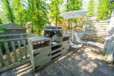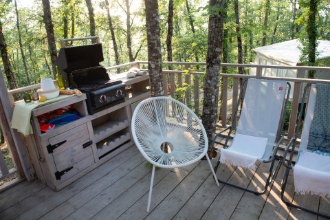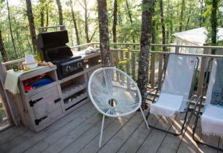 - Terrasse mit Möbeln und Elektrogrill.