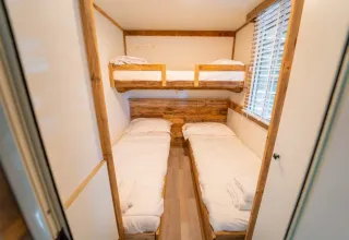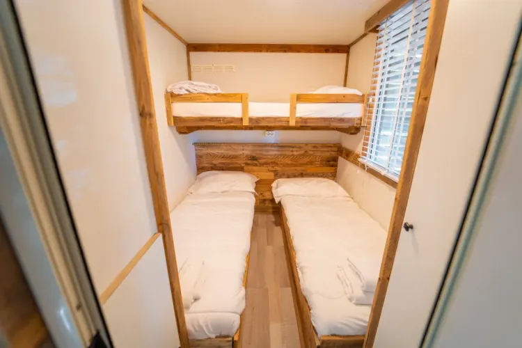 Die Lodge verfügt über zwei Schlafzimmer: ein Hauptschlafzimmer mit Doppelbett und ein flexibles zweites Zimmer mit zwei Einzelbetten und einem Ausklappbett. Draußen können Sie auf der schönen Terrasse mit robusten Möbeln und Elektrogrill entspannen. Während Ihres Aufenthaltes sind frische Handtücher und bezogene Betten für eine reibungslose Ankunft inklusive.
