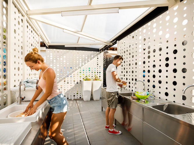 Mi sàtoros mobilhàzban szálltunk meg, ami tökéletes választás volt. A konyha teljesen felszerelt, a szobák kényelmesek, minden nagyon tiszta volt. Hangulatos a sátor belül, klíma is volt, grillezni is tudtunk. Sajnos a kemping területén lévő medencéket nem tudtuk használni, nekünk nagyon hideg volt a vize. A kemping területén minden van, bolt, suvenires, étterem, játszótér, sportpályák, kutyusoknak is külön játszó. Családoknak ideális, de baráti társasággal is. Szerettünk itt lenni.
